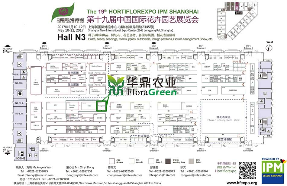 华鼎农业 于2017年5月10-12日在上海新国际博览中心(浦东新区龙阳路 2345 号)参与第19屆中国国际花卉园艺展览会(IPM Shanghai 2017)。中国国际花卉园艺展览会是目前国内最具权威性的花卉展,每年4-5月份在上海和北京两地轮流举办。