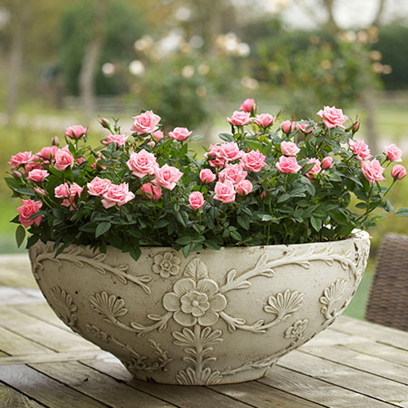 玫瑰星品种主要有适合于9-12cm 的小叶精品型和适合于12cm盆或以上的大叶豪华型两个系列,在欧洲的年产量已超过1600万盆。